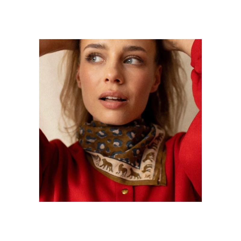 | MODÈLE | Small Foulard Coton Dupitta Leopard Tapenade |