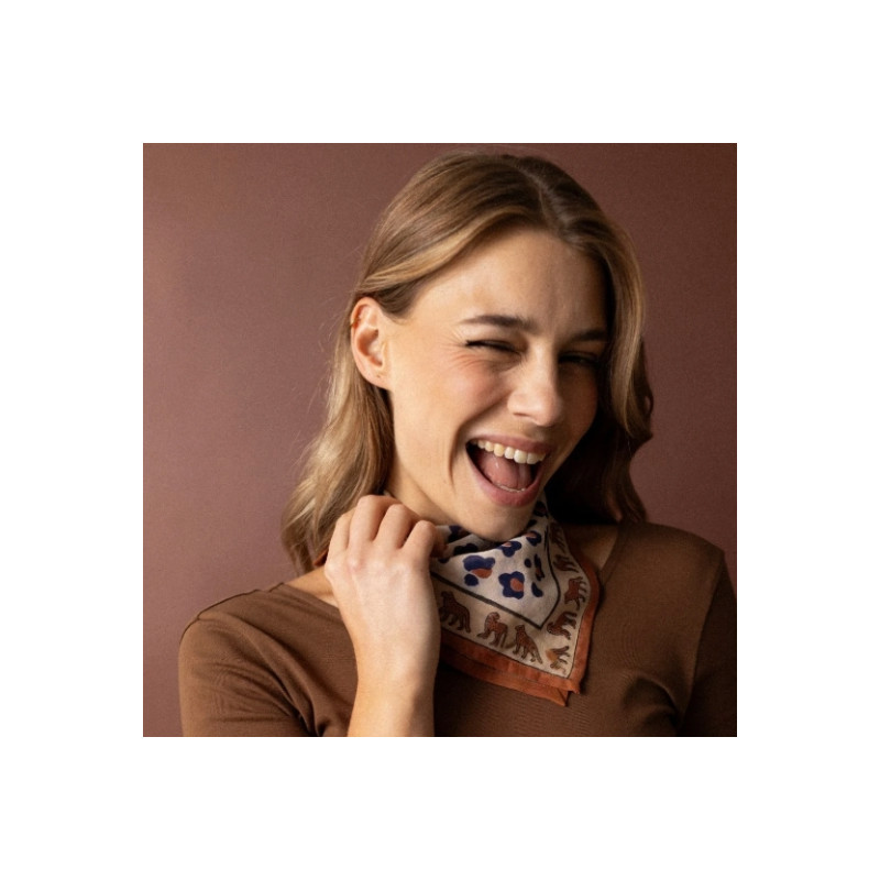 Le foulard Dupitta au format carré 50x50 cm se distingue par son imprimé léopard plein de caractère. Confectionné en coton léger et respirant, il est agréable à porter et facile à nouer. Polyvalent, il s’adapte à toutes les envies, autour du cou, dans les cheveux ou attaché à un sac. Un accessoire raffiné qui apporte une touche sauvage et élégante à chaque tenue.