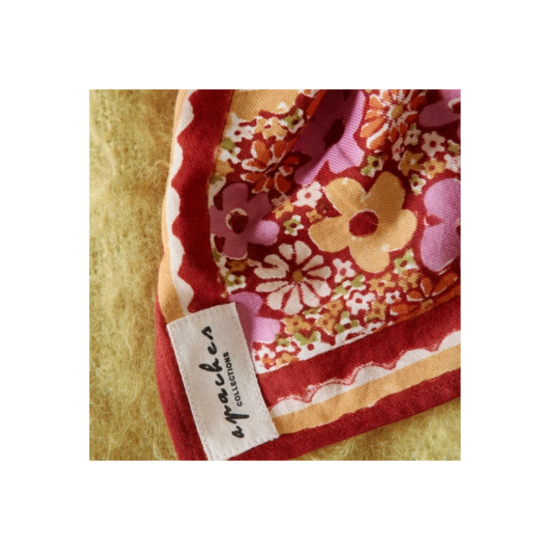 Le foulard MANIKA Janie Dahlia d’Apaches Collections apporte une touche lumineuse et féminine à toutes les tenues. Son imprimé signature aux teintes florales donne du relief tout en restant facile à associer. Confectionné en coton doux, il est agréable à porter au quotidien et convient à toutes les saisons. Polyvalent, il se noue autour du cou, dans les cheveux ou en accessoire pour varier les styles. Un essentiel à partager, pensé pour petits et grands.