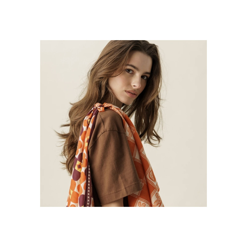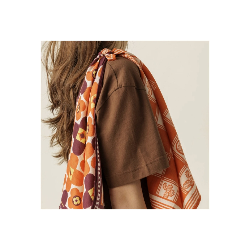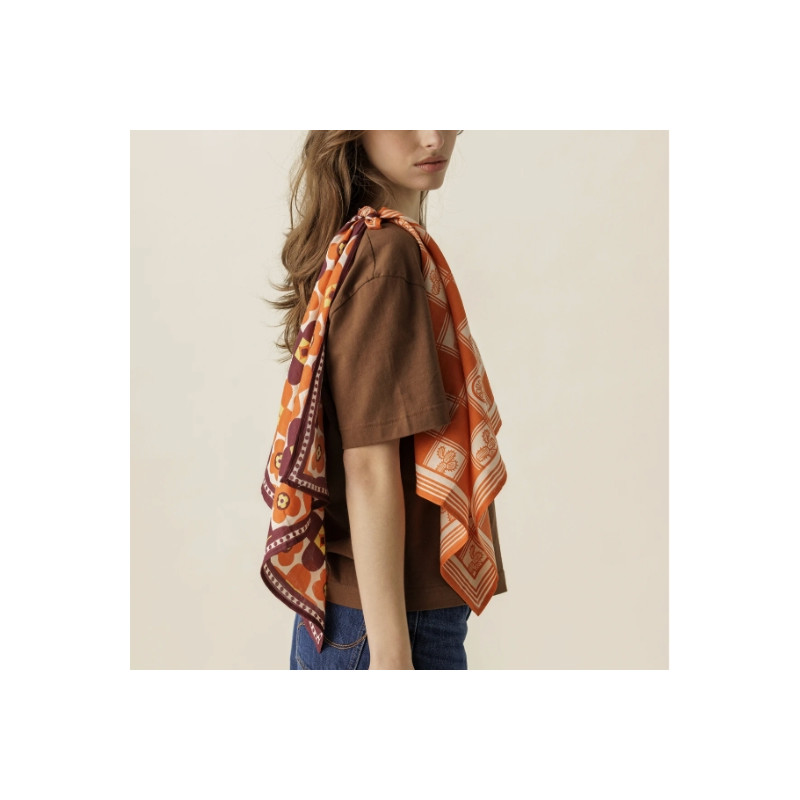 Le foulard MANIKA Caleido Auburn d’Apaches Collections en coton doux séduit par ses teintes élégantes et chaleureuses. Un accessoire facile à porter et à partager en famille toute l’année.