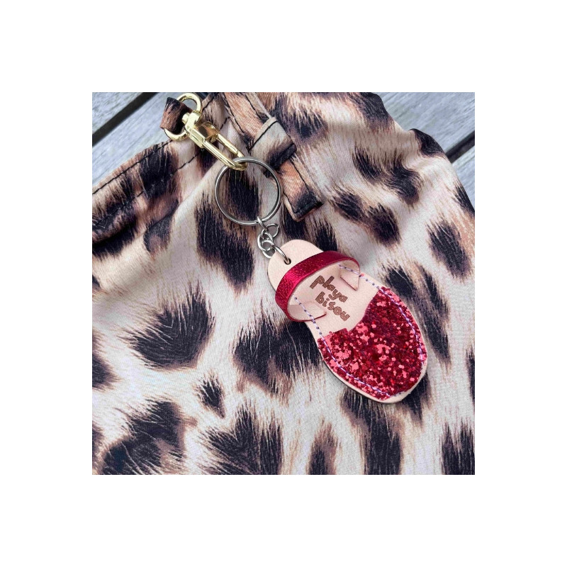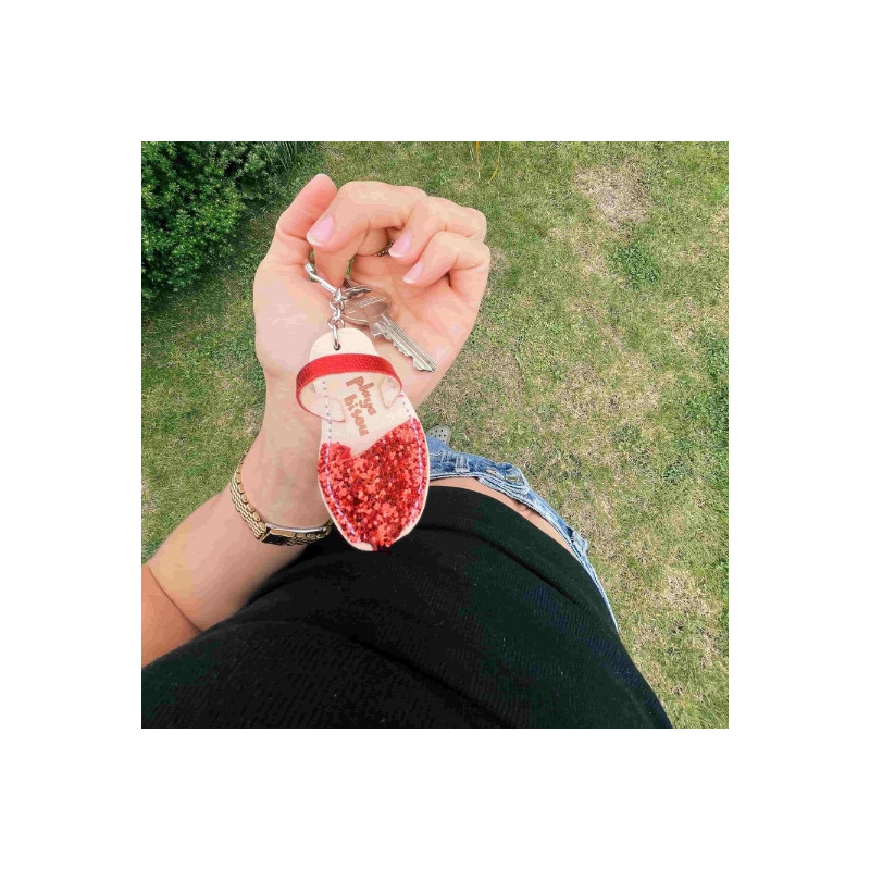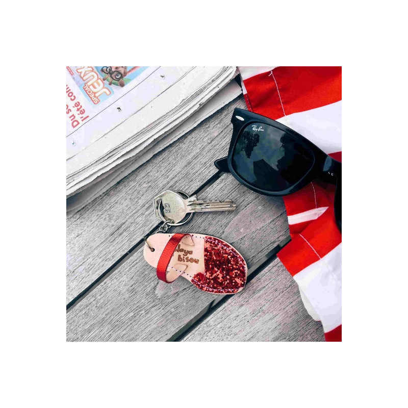 Avec le porte-clés Avarca de chez Mathilde Cabanas et sa jolie sandale à paillettes rouges, ajoutez une touche d'éclat et de style à vos accessoires du quotidien !