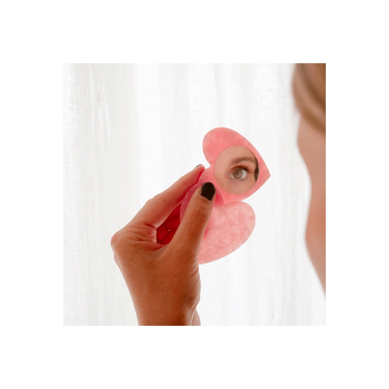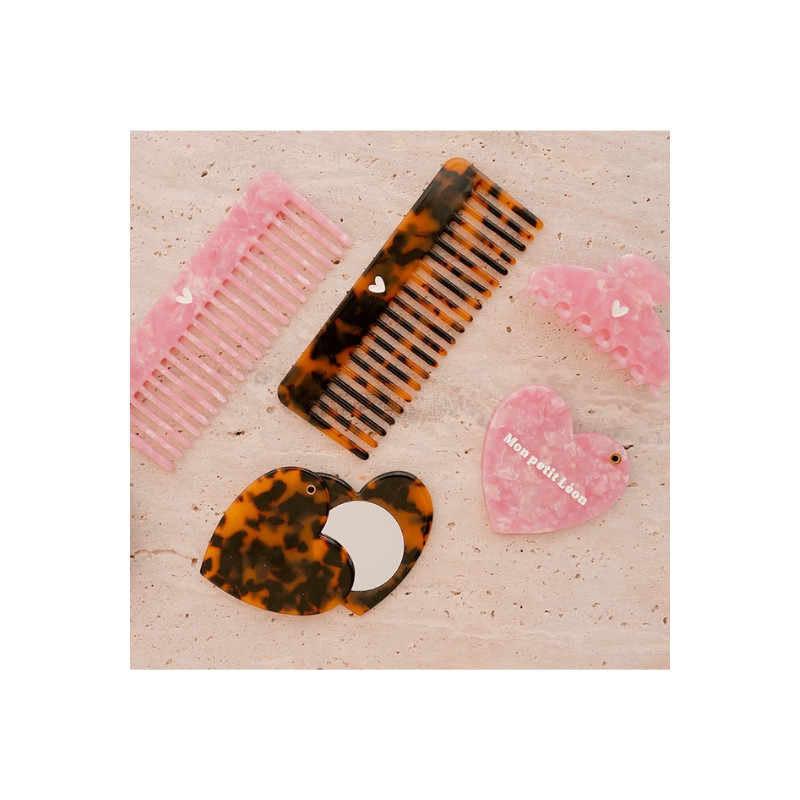 Craquez pour ce miroir en forme de cœur de la marque Mon Petit Léon, une édition limitée disponible en écailles rose ou léopard. À la fois pratique et esthétique, il se glisse facilement dans un sac pour vous accompagner partout avec style.