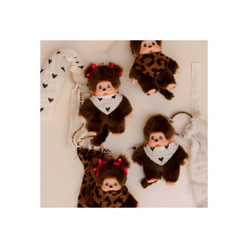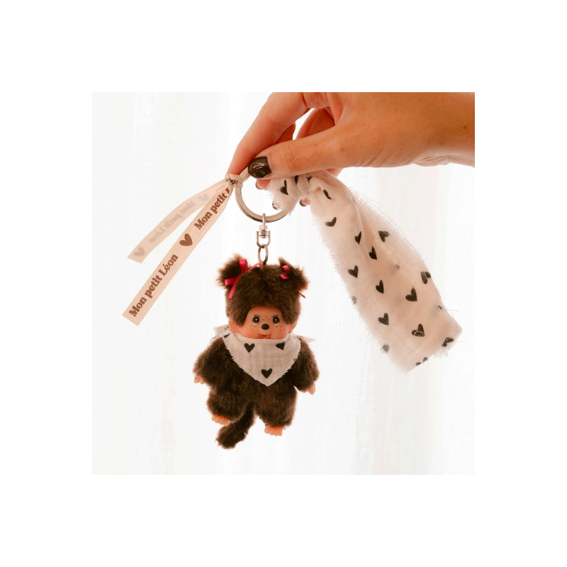 Le porte-clés Kiki Monchhichi x Mon Petit Léon est une édition collector ornée d’un bandana et de rubans en gaze de coton, dont un sérigraphié Mon Petit Léon.