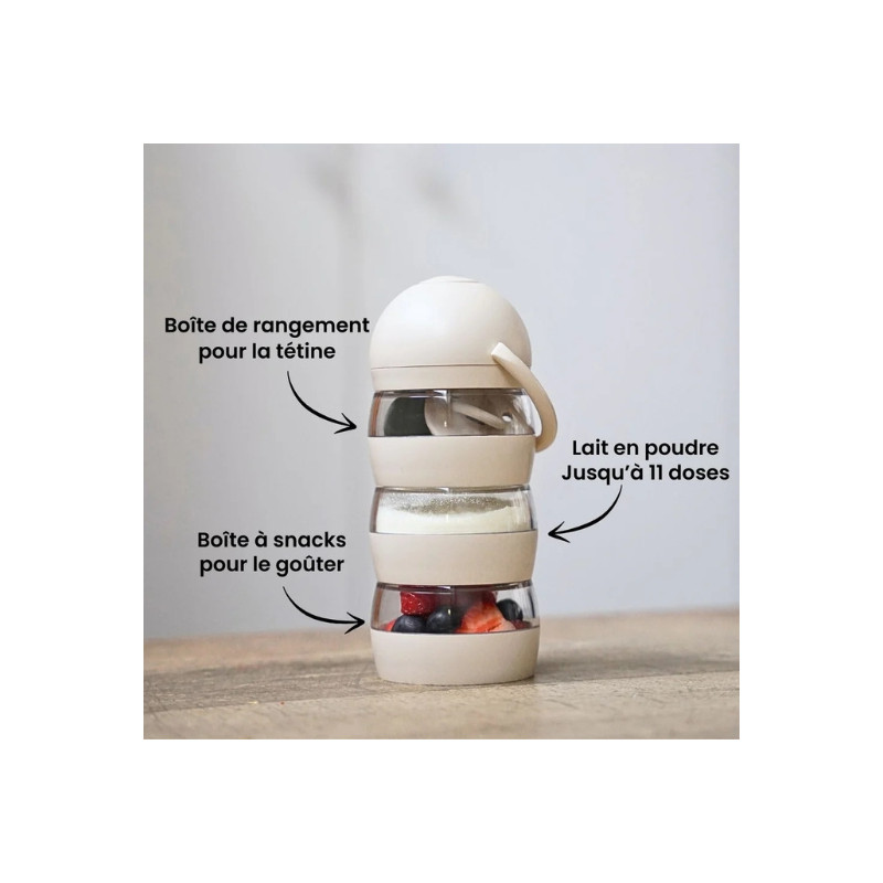 a boîte doseuse de lait So Mimi de Elhée est l’alliée idéale pour simplifier les repas de bébé. Avec ses 3 compartiments hermétiques, son bec verseur pratique et sa grande capacité (jusqu’à 11 doses par étage), elle assure précision et confort au quotidien. Compacte, légère et évolutive, elle se transforme aussi en boîte à snacks ou à tétine. Fabriquée en France en matériau durable sans BPA, elle est aussi élégante que fonctionnelle.
