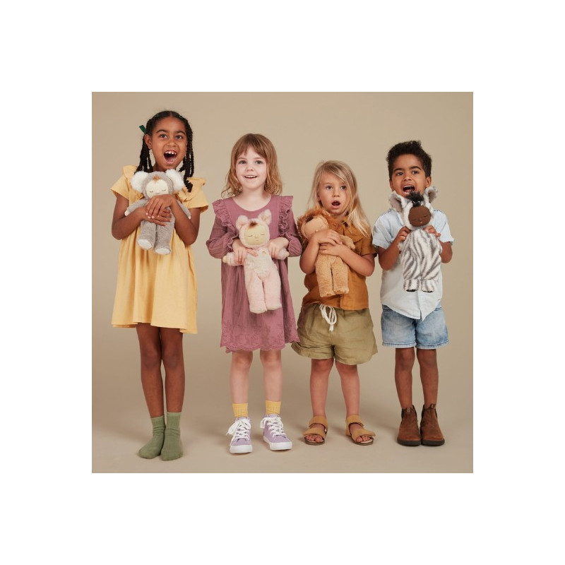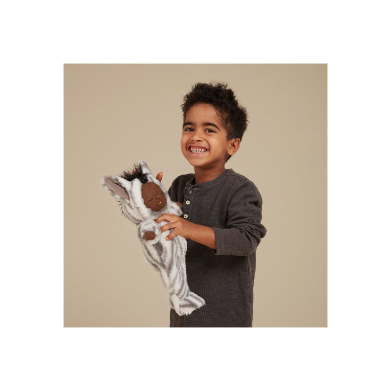 Cette poupée de la marque Olli Ella s'est vêtue de sa plus belle combinaison imprimé zèbre. Elle est spécialement conçue pour les câlins et les moments de jeux. Chaque visage dispose de deux yeux et d'une bouche brodés ainsi qu'un petit nez de forme ovale. La poupée peut être placée dans de multiples positions : assise, de sommeil...Les poupée Olli Ella portent une tenue inamovible avec deux oreilles douces en fourrure et un arc-en-ciel au-dessus de leur coeur. Zebra mini est une superbe idée cadeau de naissance ou d'anniversaire pour les plus grands qui pourront l'ajouter à leur collection.