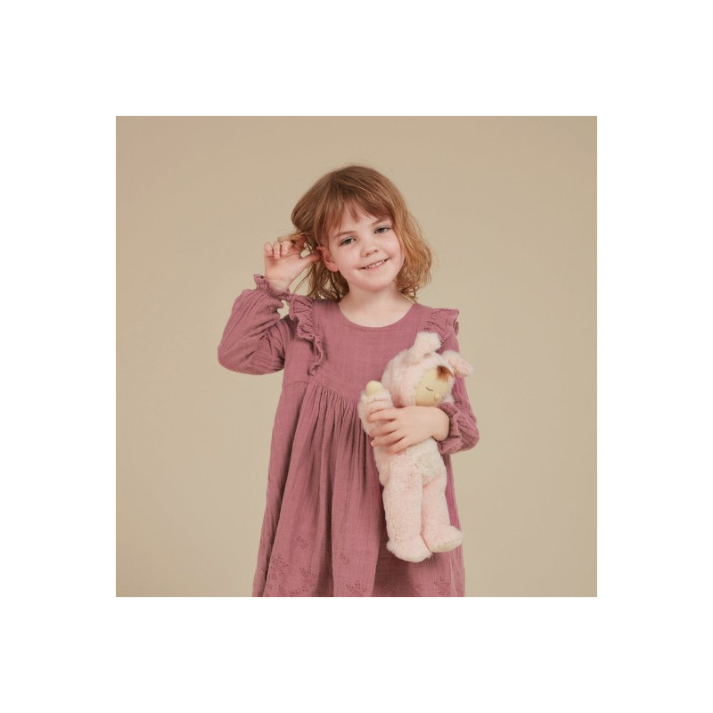Cette adorable poupée Piggy pickle de la marque Olli Ella s'est vêtue de sa plus belle combinaison au doux coloris rose. Chaque visage dispose de deux yeux et d'une bouche brodés ainsi qu'un petit nez de forme ovale. La poupée peut être placée dans de multiples positions : assise, de sommeil...Les poupée Olli Ella portent une tenue inamovible avec deux oreilles douces en fourrure et un arc-en-ciel au-dessus de leur coeur. Piggy pickle est spécialement conçue pour les câlins et les moments de jeux. C'est une superbe idée cadeau de naissance ou d'anniversaire pour les plus grands qui pourront l'ajouter à leur collection.