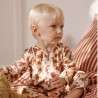 Pratique, il dispose d’une ouverture frontale par boutons ainsi que de boutons-pression à l’entrejambe, permettant un habillage facile et des changes simplifiés. Ses manches longues apportent chaleur et confort, tandis que l’empiècement froncé au dos crée une coupe ample qui laisse bébé libre de ses mouvements.