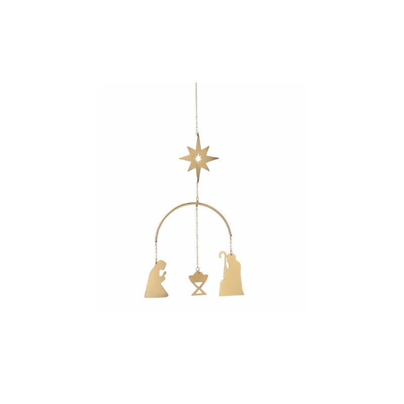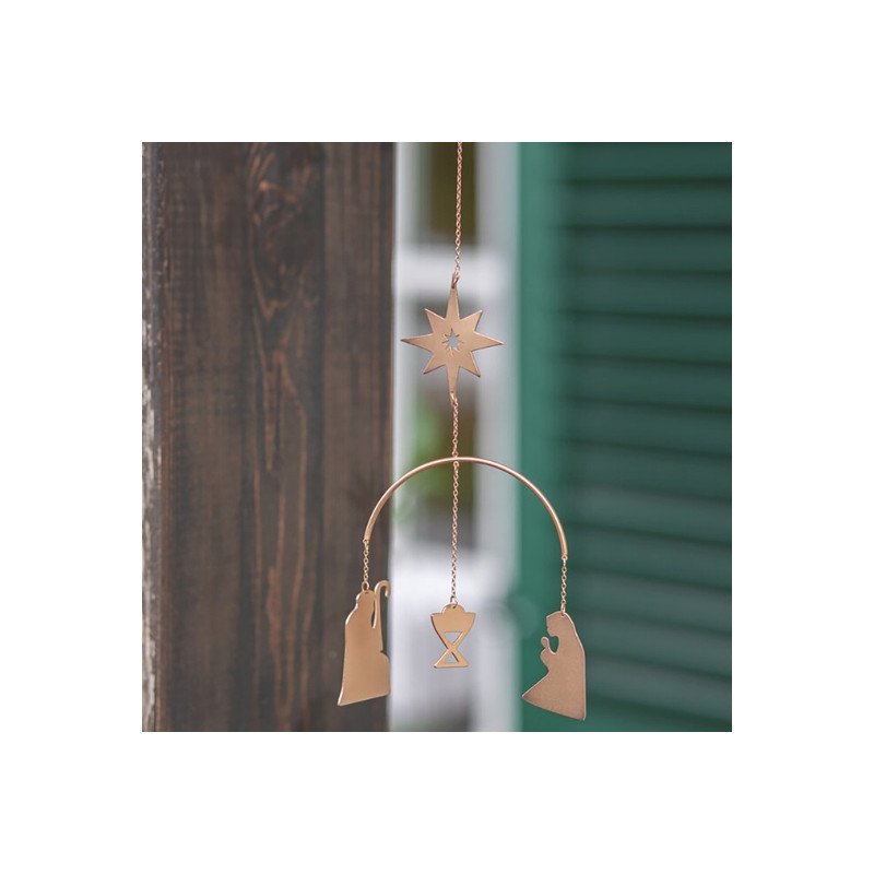 Un mobile délicat en métal doré, pune décoration dorée et poétique qui illumine votre intérieur de l’esprit de Noël.arfait suspendu près d’une fenêtre ou d’un sapin, il diffuse une atmosphère douce et spirituelle, empreinte de la magie de Noël.