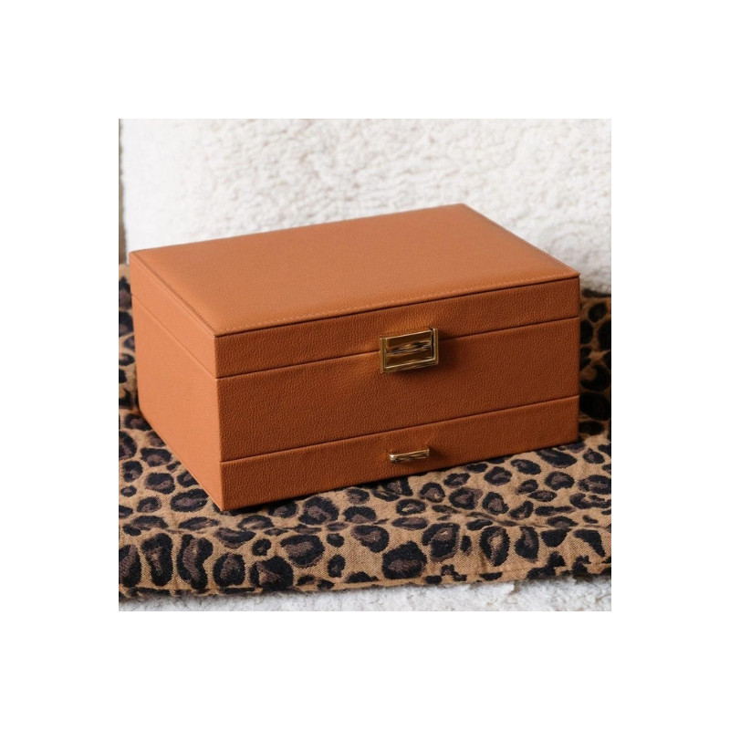 Découvrez la boîte à bijoux Denise en simili cuir, coloris "camel" de la marque Maison Scarlett. Elle vous permettra de ranger et protéger l’intégralité de votre collection tout en sublimant votre intérieur. Elle dispose de nombreux emplacements adaptés à chaque type de bijoux, d'un plateau amovible avec languettes, d'un grand tiroir modulable et du logo embossé à l'intérieur du couvercle. Elle comporte assez de rangements pour y placer : 10 colliers, 49 bagues, 21 paires de boucles d'oreilles et 6 bracelets. C'est le coffret parfait pour les fans de bijoux !