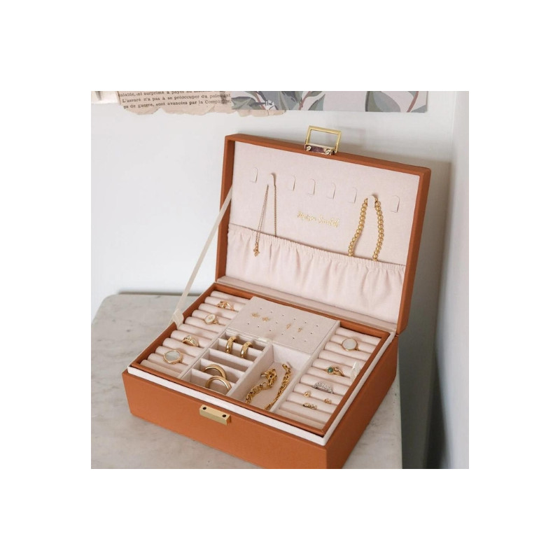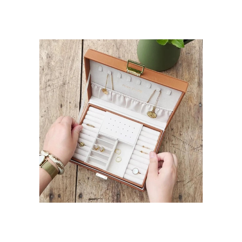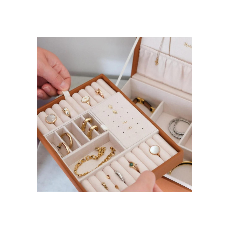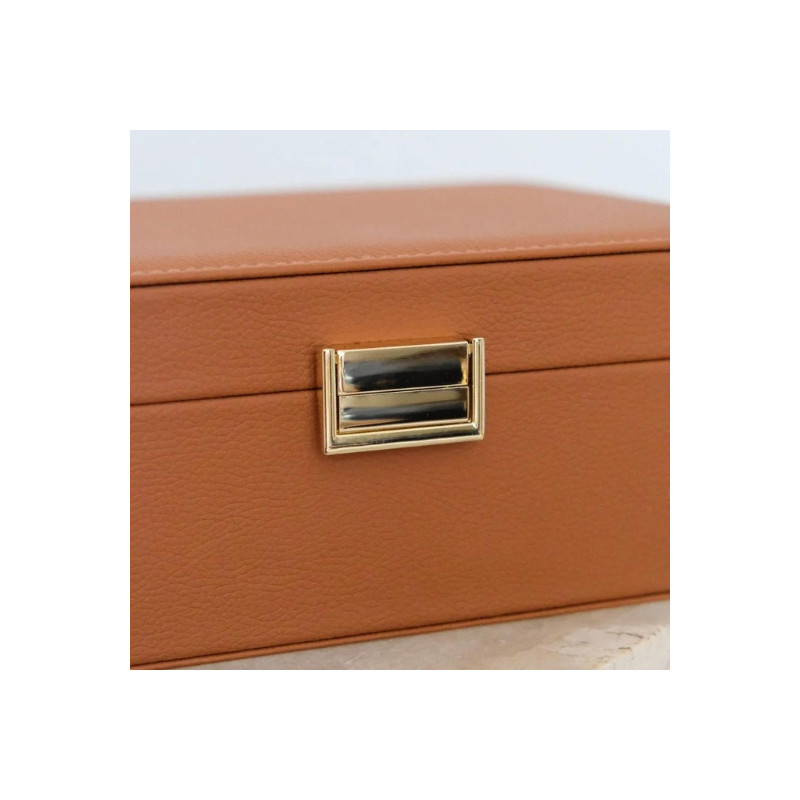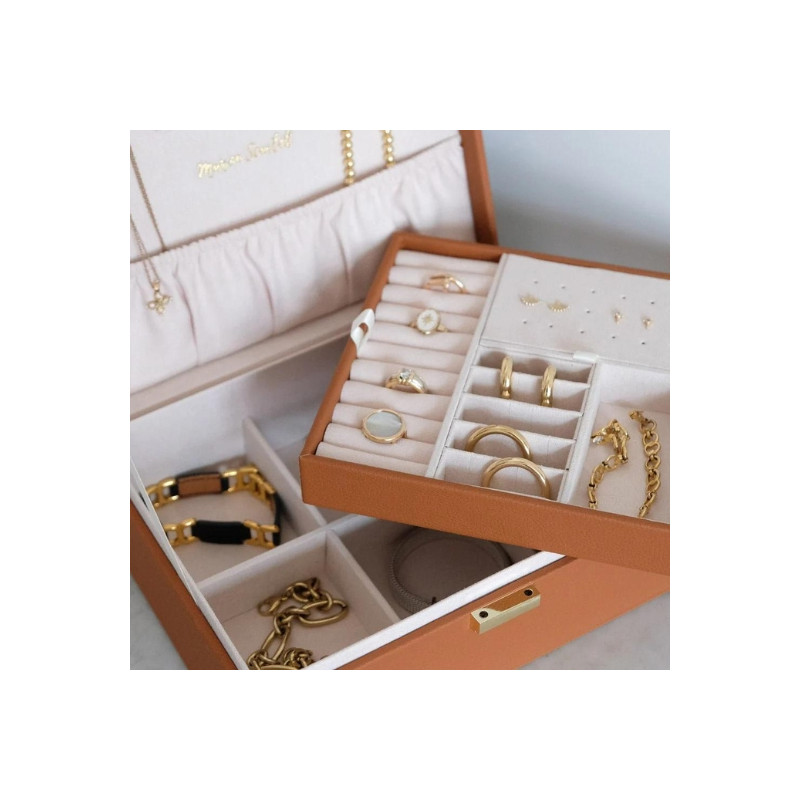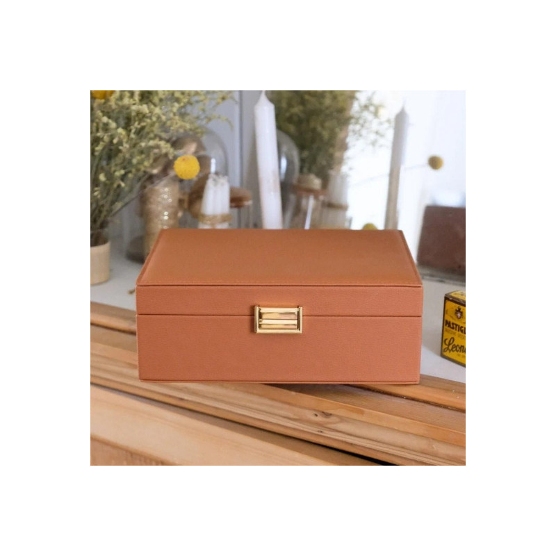 Découvrez la boîte à bijoux Louise coloris "camel" de la marque Maison Scarlett. Dotée d'un intérieur en velours ultra-doux et habillée d'un luxueux revêtement en cuir synthétique grainé, elle allie élégance et fonctionnalité à la perfection.