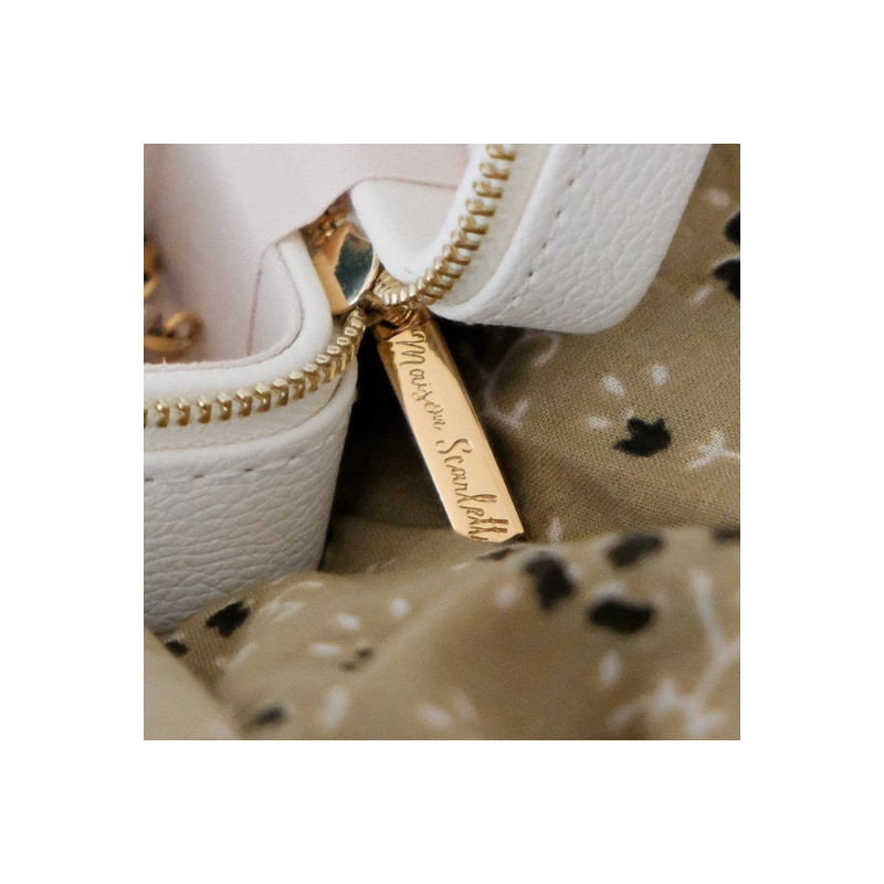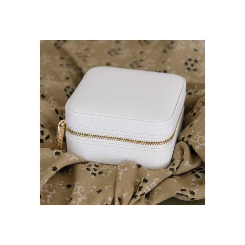 La boîte à bijoux de voyage Corinne de chez Maison Scarlett est l'accessoire idéal pour les personnes souhaitant garder leurs bijoux organisés et protégés pendant leurs déplacements. Fabriquée en cuir blanc de haute qualité, elle combine élégance et fonctionnalité.