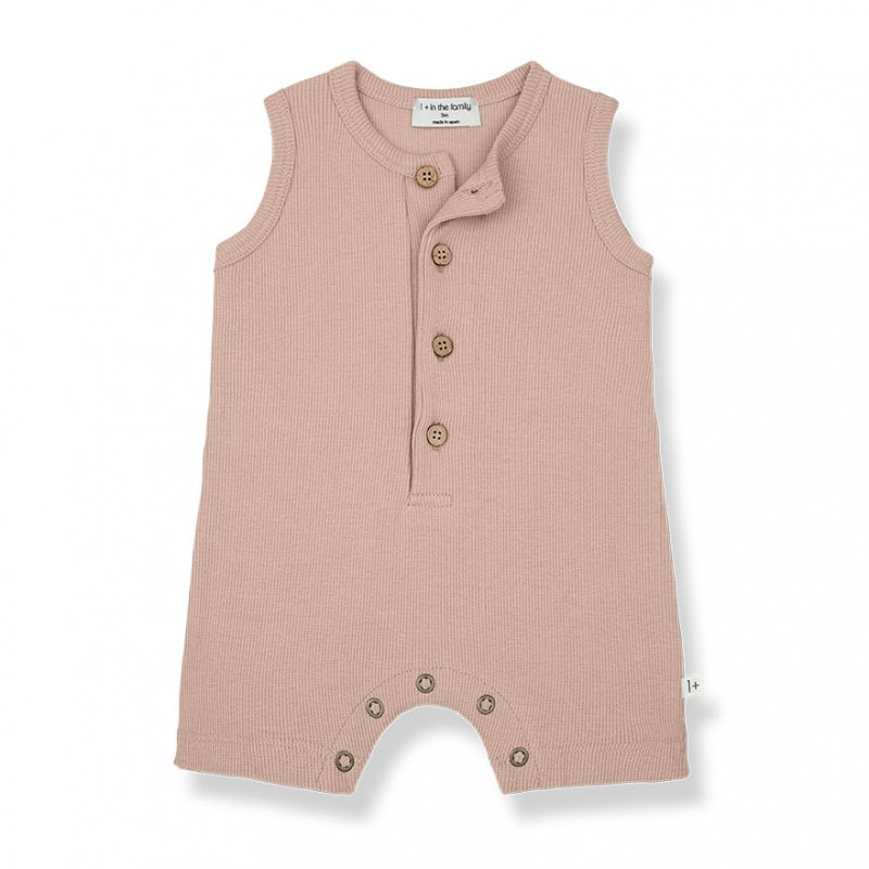 Légère et confortable, adoptez pour votre bébé ou votre enfant la barboteuse Pino de la marque 1 + in the family. Elle est conçue dans un tissu côtelé en coton. Cette barboteuse sans manche coloris vieux rose est dotée d'un col rond, de petits boutons en bois sur l'avant et de deux poches plaquées sur l'arrière. Des boutons-pression sont présents à l'entre-jambe pour faciliter le change et l'habillage de bébé.
