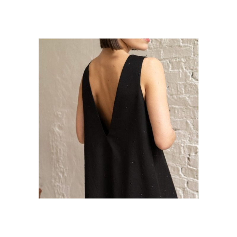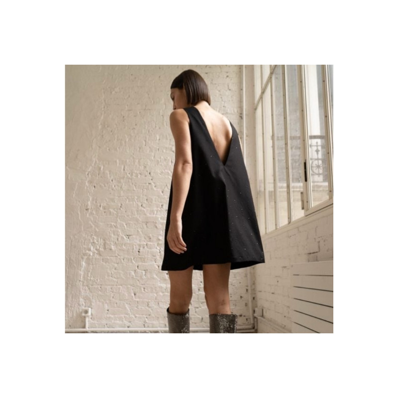 Faites briller vos soirées avec cette robe courte, ornée de délicats strass pour un éclat subtil. Avec son dos nu et sa coupe trapèze, elle allie élégance et audace pour un look inoubliable.