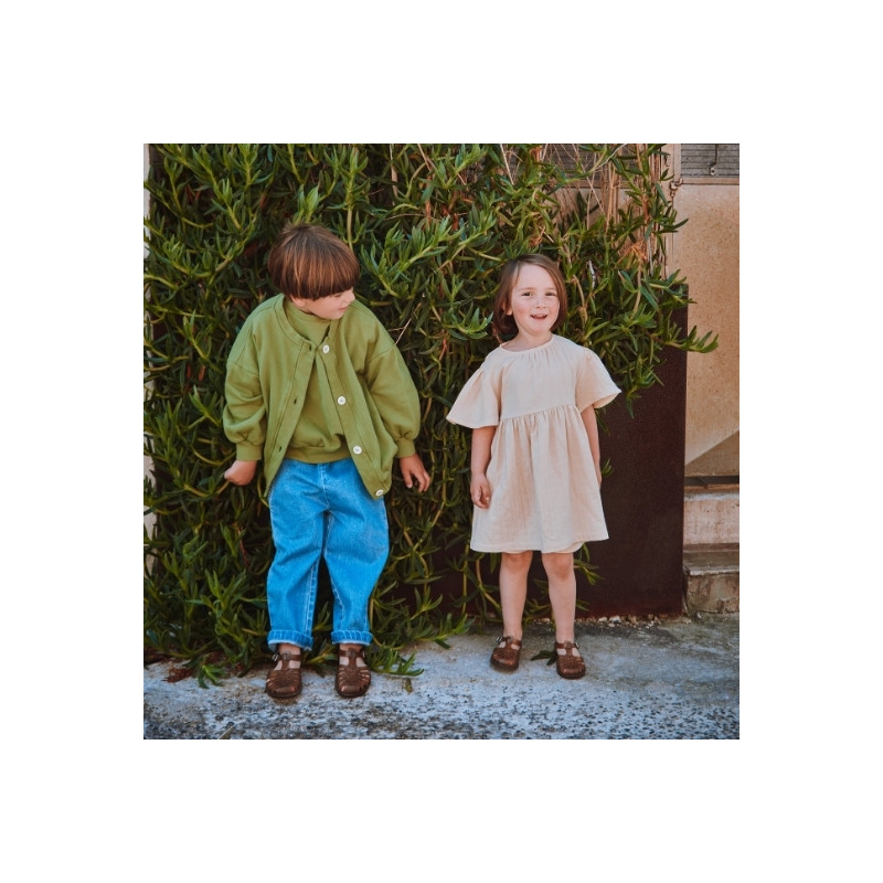 Un souffle d’été, une brise légère, et la robe Lilas danse au rythme des journées ensoleillées. Avec sa coupe ample et vaporeuse, elle accompagne les petits explorateurs dans toutes leurs aventures estivales avec confort et élégance.