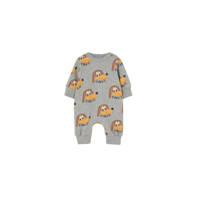 Combinaison gris chiné en coton 100 %, motif chiens rigolos. Confort et fun Tiny.