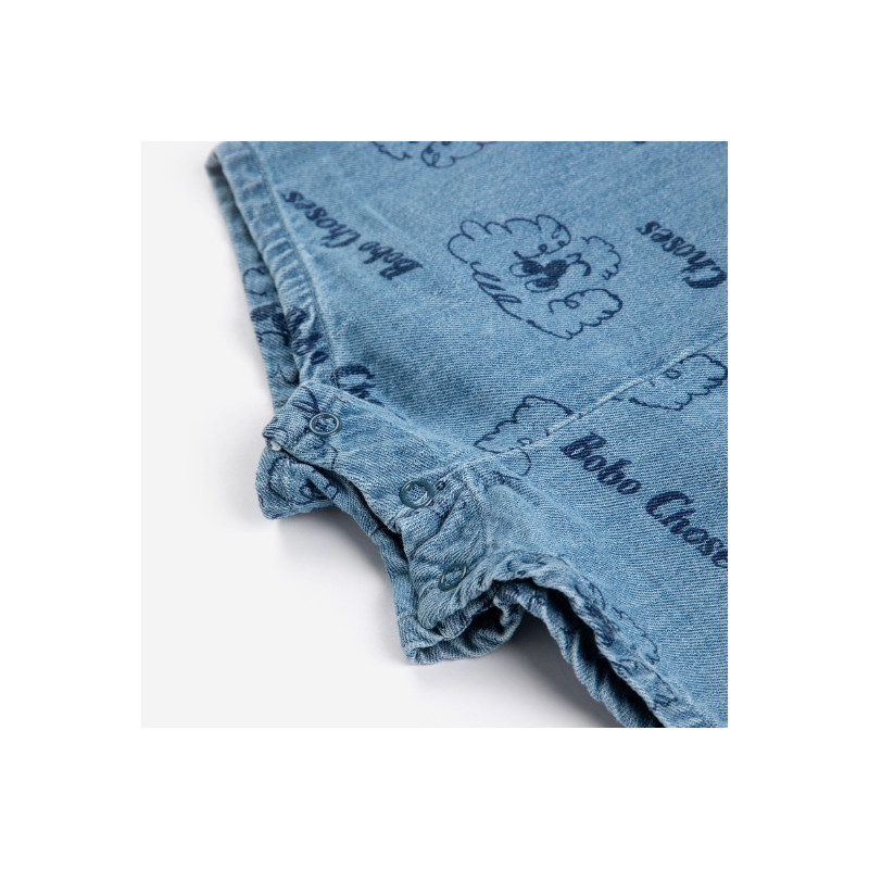 Bobochoses : Combinaison Pickles the dog all over denim bébé - light blue