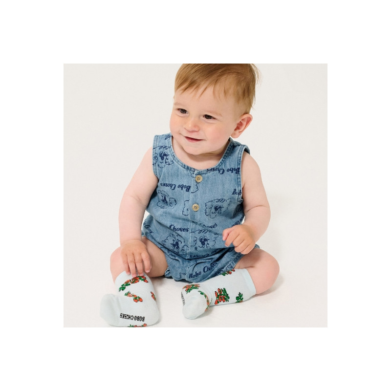 La combinaison Pickles The Dog All Over Denim de Bobo Choses se distingue par son denim bleu clair orné de l’imprimé iconique Pickles. Sa coupe confortable et ses boutons sur le devant facilitent l’habillage, tout en offrant une allure ludique et décontractée, parfaite pour le quotidien des tout-petits.