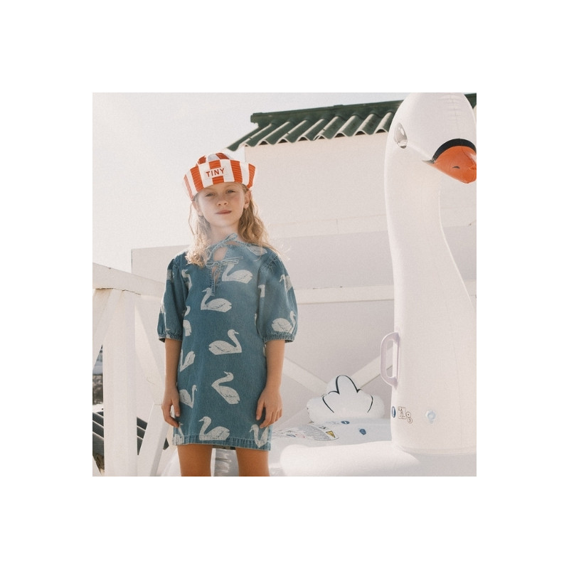 Cette robe enfant à imprimé cygnes est confectionnée en denim bleu, pour un style à la fois doux et moderne. Sa coupe droite est rehaussée de manches légèrement bouffantes, offrant une silhouette confortable et élégante. Le laçage sur le devant apporte une touche délicate et originale, tandis que l’imprimé cygnes emblématique de Tiny Cottons donne du caractère à la pièce. Une robe facile à porter au quotidien, aussi jolie avec des sandales qu’avec des baskets.