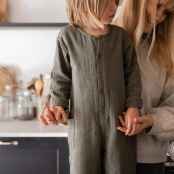 Cette combinaison en coton a des élastiques au niveau des bras et des cuisses qui lui donnent un effet vintage.