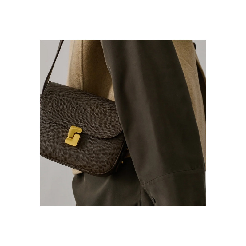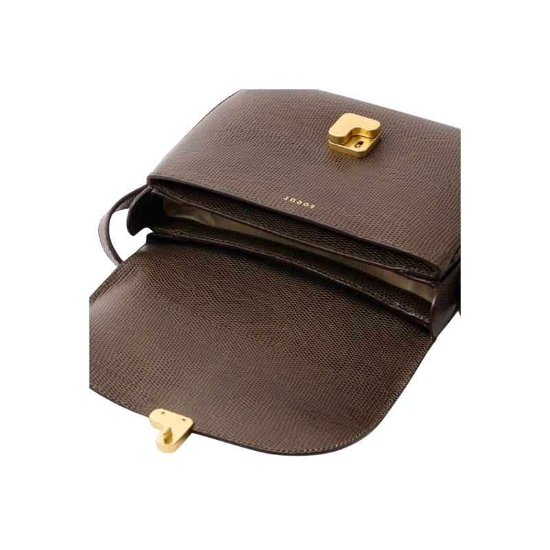 Découvrez le sac Bellissima mini en cuir glacé vert olive de chez Soeur !