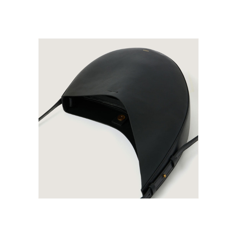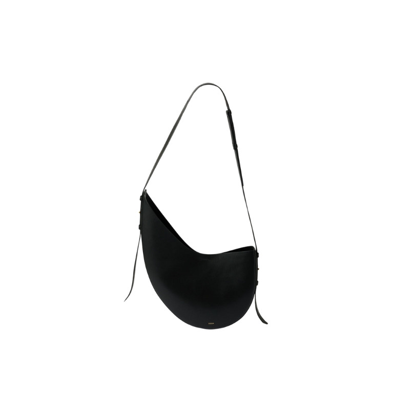 Le sac Winona dispose d'une forme arrondie asymétrique. Il peut se porter à l'épaule ou en cross body grâce à sa bandoulière en cuir ajustable avec boutons de col. Il est doté d'un pochon en cuir d'agneau amovible à l'intérieur du sac et qui est fixé par un bouton-pression. Ce sac est joliement fini par une métallerie dorée.