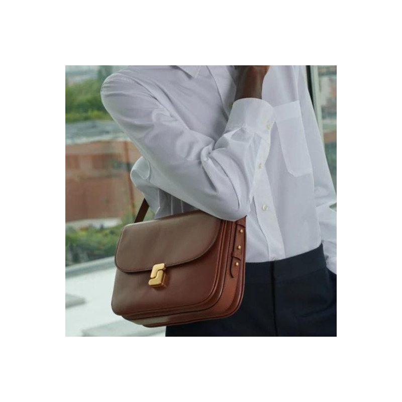 - Design élégant et fonctionnel : Le Sac Bellissima Maxi est conçu pour être à la fois beau et pratique. Son grand rabat est orné d’un fermoir en forme de "S", développé en exclusivité pour Soeur, ajoutant une touche signature à ce modèle emblématique.