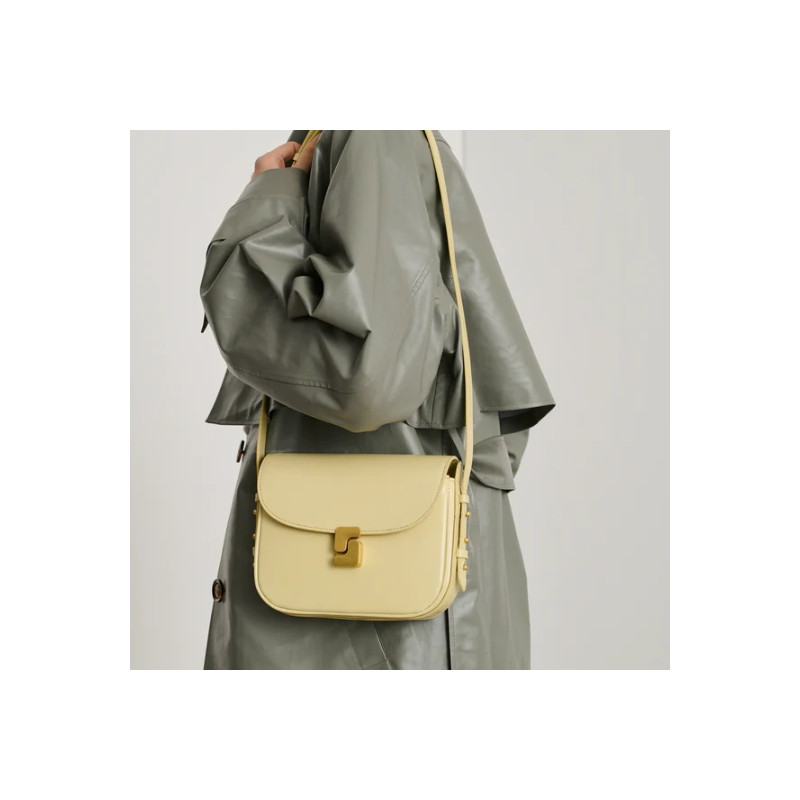 Un format mini, une allure maximale ! Le sac Bellissima mini en jaune pâle de chez Soeur est une pépite d'élégance et de fonctionnalité. Son design épuré, sublimé par un fermoir monogramme doré, en fait l’allié parfait des journées bien remplies et des soirées chics.
