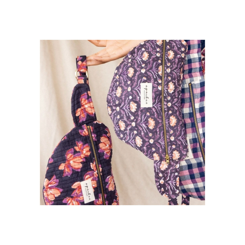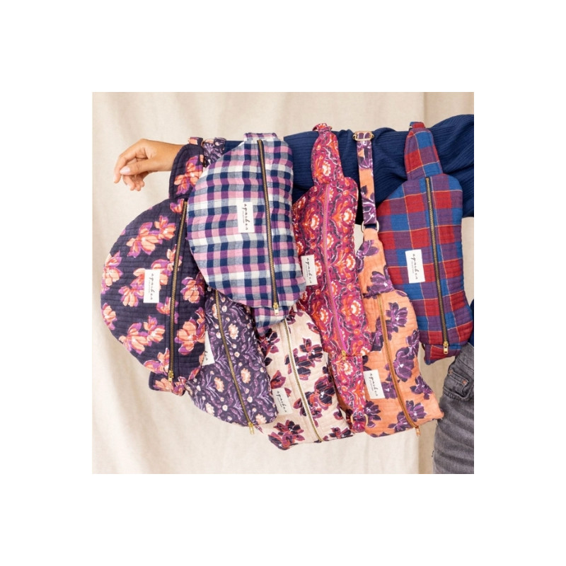 Le sac banane Keli en velours lisse d’Apaches Collections allie praticité et élégance. Doux et confortable, il se porte au quotidien et existe aussi en version mini pour des looks assortis parent-enfant.