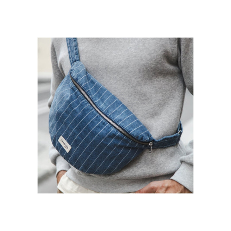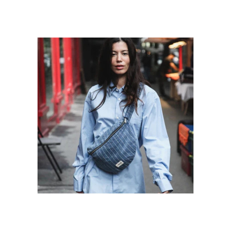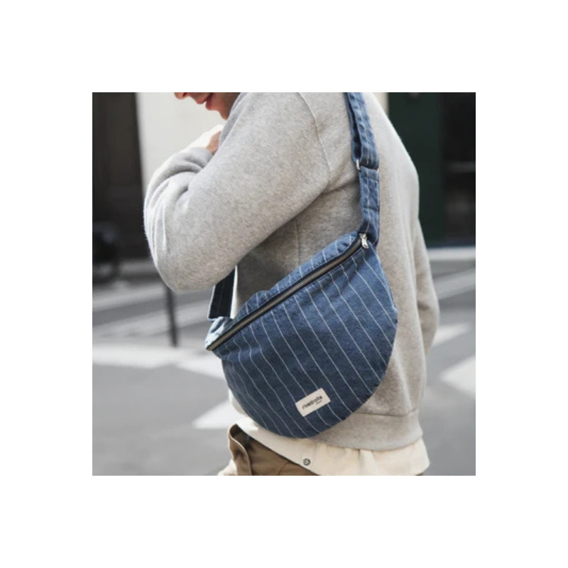 L’iconique sac banane Custine se réinvente dans une version XL en denim noir délicatement patiné, au look vintage inspiré des années 90. Délavée à la pièce, elle conserve tout le style et la praticité qui ont fait son succès. Son grand compartiment et sa poche intérieure zippée remplacent aisément un sac à main, pour un usage quotidien aussi fonctionnel qu’élégant. Sa anse ajustable permet un porté confortable, et son zip YKK® argenté signe une finition de qualité.