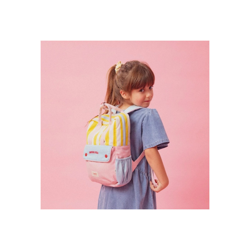 Le sac à dos Amour Fou de chez Chamaye se distingue par ses rayures jaunes lumineuses et son esprit à la fois fun et pratique. Pensé pour accompagner le quotidien, il s’adapte aussi bien aux enfants qu’aux adultes grâce à ses deux formats. Confortable avec ses anses ajustables et rembourrées, il assure un porté agréable tout au long de la journée, tandis que son fond renforcé et sa fermeture zippée garantissent solidité et sécurité.