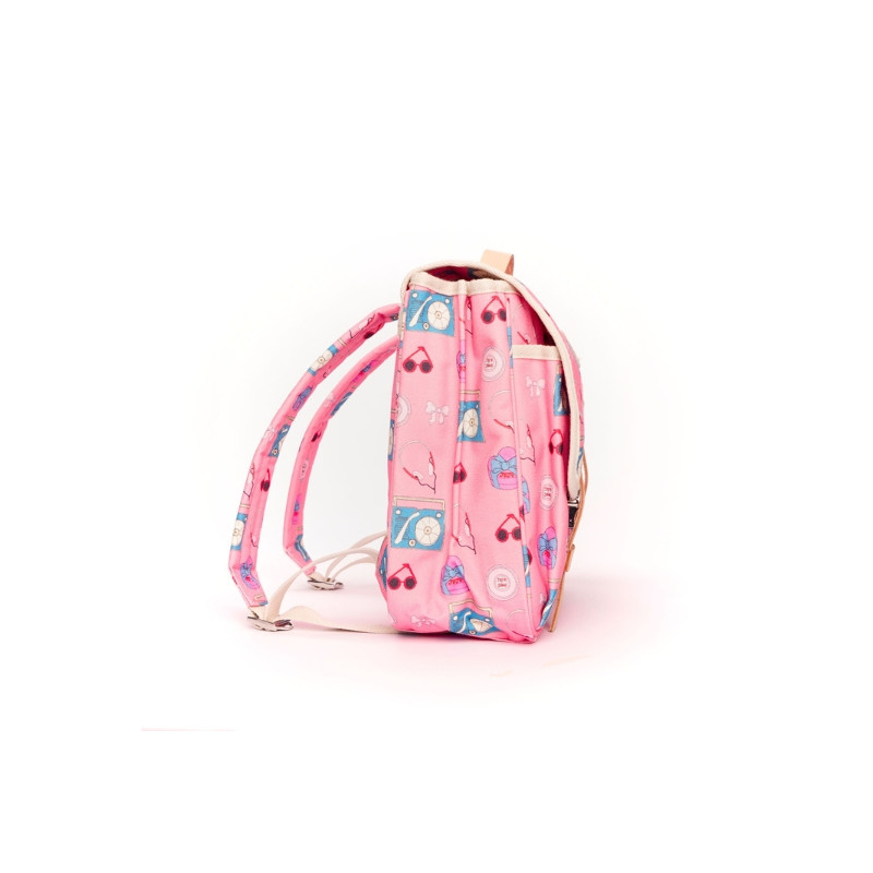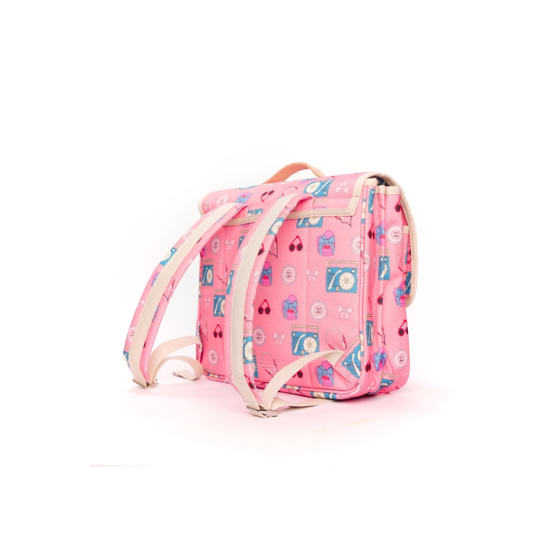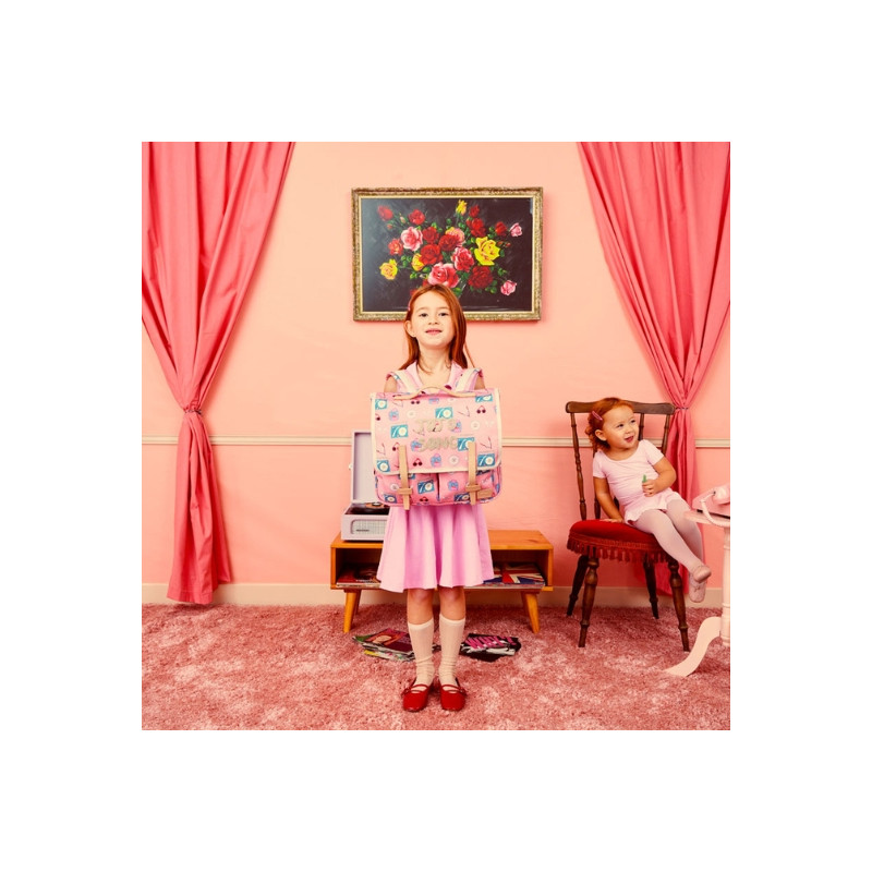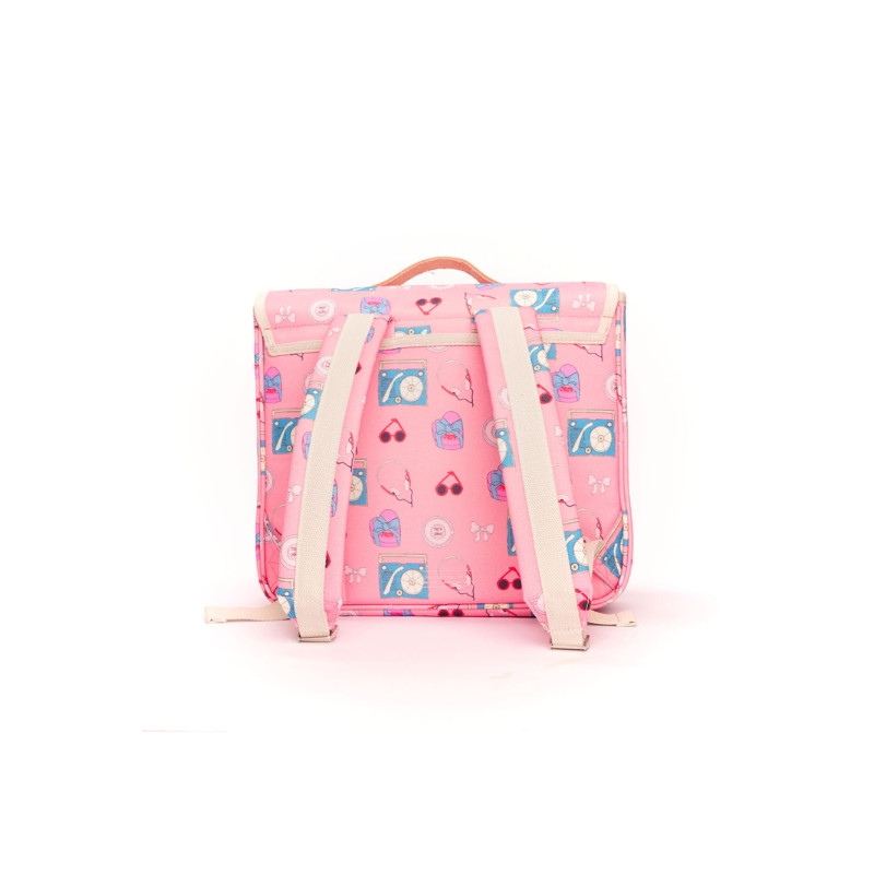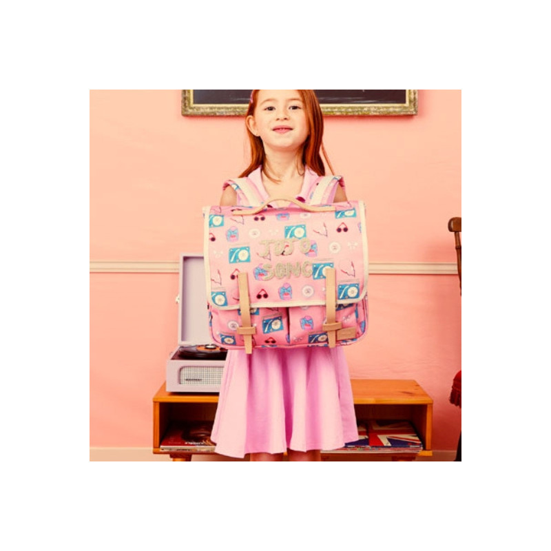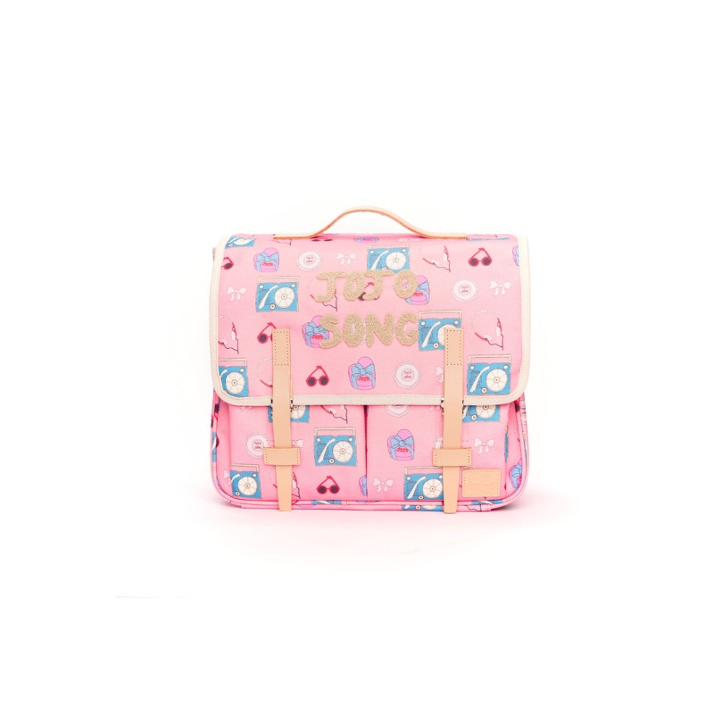 Cartable JOJO SONG de Jojo Factory, parfait pour le primaire dès le CP. Solide et imperméable, il contient formats A4 et 24x32 cm. Dos matelassé, bretelles ajustables, poignées et détails en cuir naturel. Deux poches frontales, compartiment intérieur zippé.