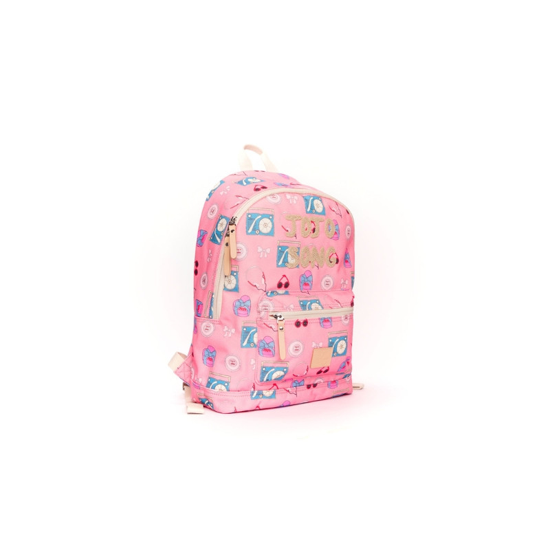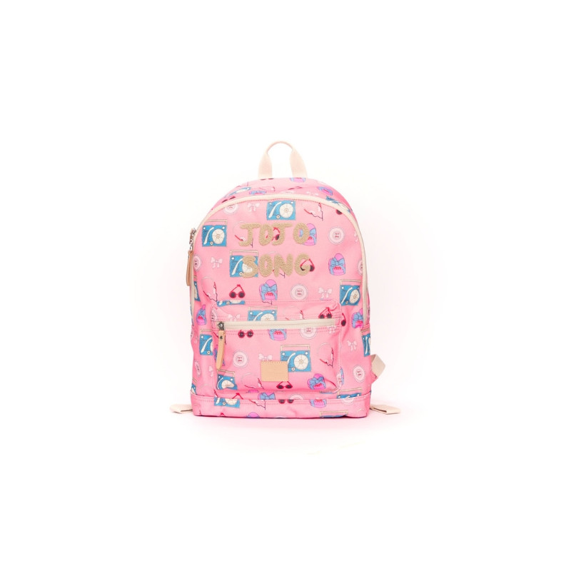 Sac à dos Jojo Factory JOJO SONG – léger, confortable et imperméable. Fabriqué en polyester recyclé RPET enduit, avec bretelles matelassées, dos renforcé et doublure en coton bio. Grand compartiment adapté jusqu'au format A4+, poche avant zippée, broderie bouclette "JOJO SONG", détails en cuir naturel. Dimensions : 25 x 33 x 12 cm. Nettoyage à sec recommandé.