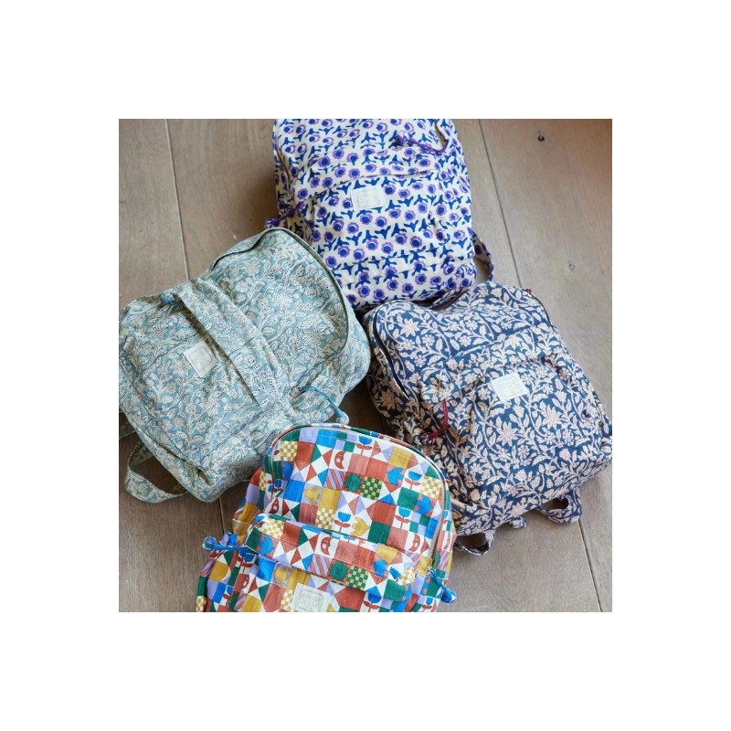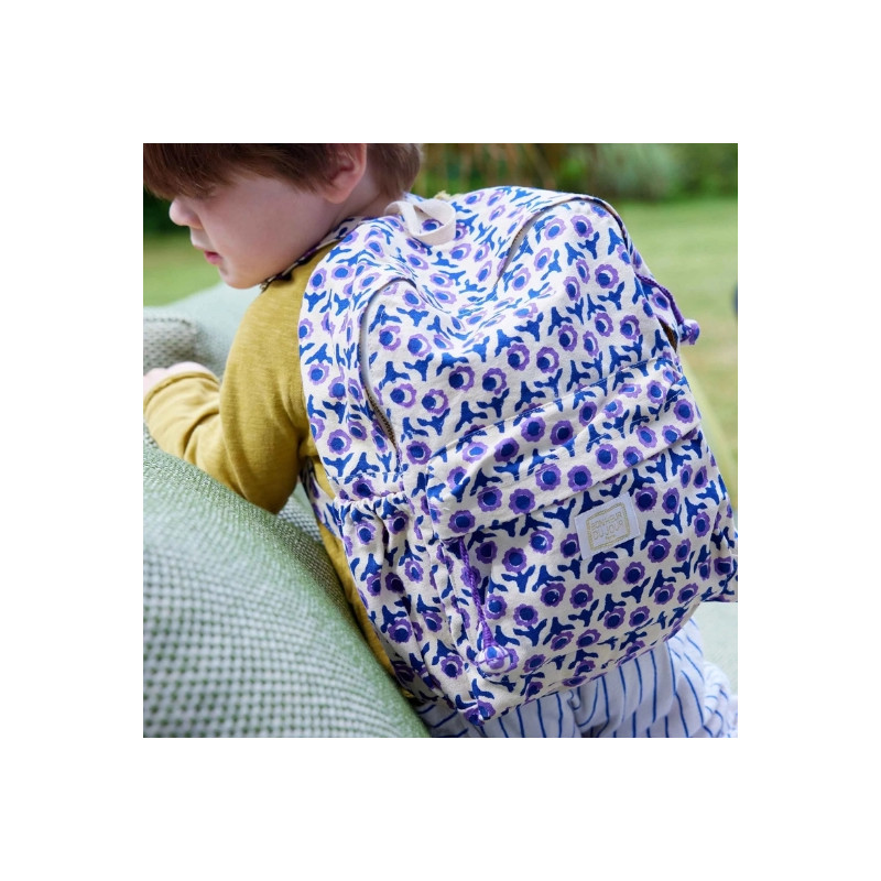 Pratique et coloré, le sac à dos BISCOTTO de Bonheur du Jour accompagne les enfants partout. En toile canvas 100 % coton imprimée à la main, il dispose d’une ouverture zippée, d’une poche frontale, d’un compartiment pour gourde et de bretelles réglables.