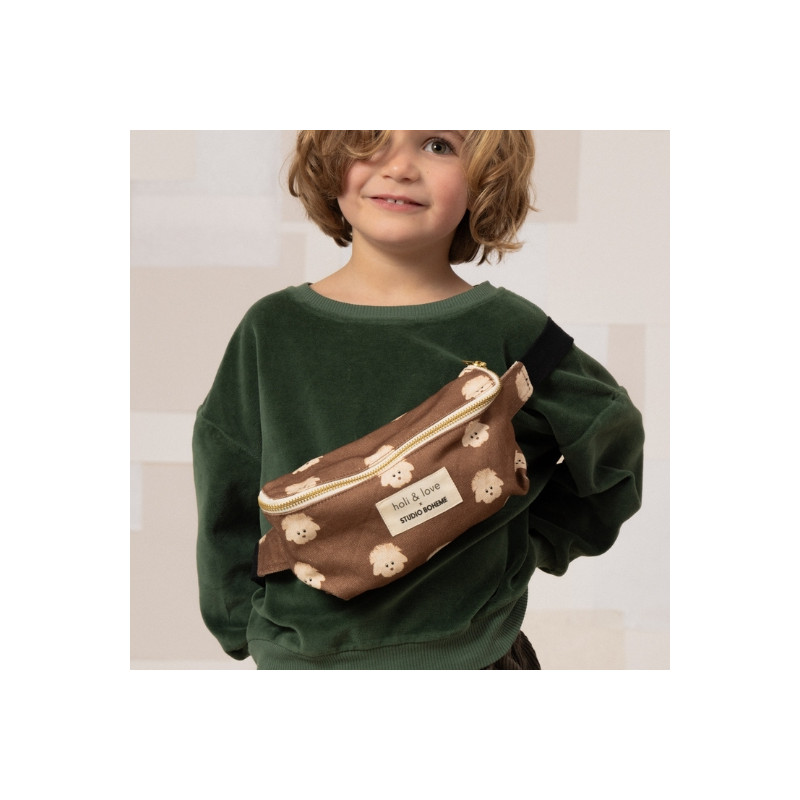 Le sac banane chien de chez Studio Bohème séduit par son imprimé ludique et sa praticité. Compact et léger, il dispose d’une fermeture zippée et d’une sangle ajustable, idéal pour transporter les essentiels avec style.