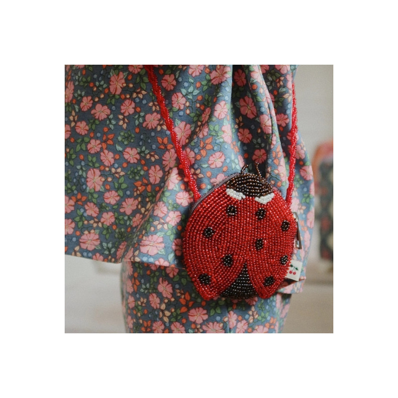 Le sac en perles Coccinelle de chez Konges Sløjd est un petit bijou d’artisanat. Entièrement fait main, il se pare de perles rouges et noires formant une adorable coccinelle. Sa bandoulière fine en perles et sa fermeture zippée solide en font un accessoire à la fois ludique et raffiné, parfait pour ajouter une touche pétillante à toutes les tenues.