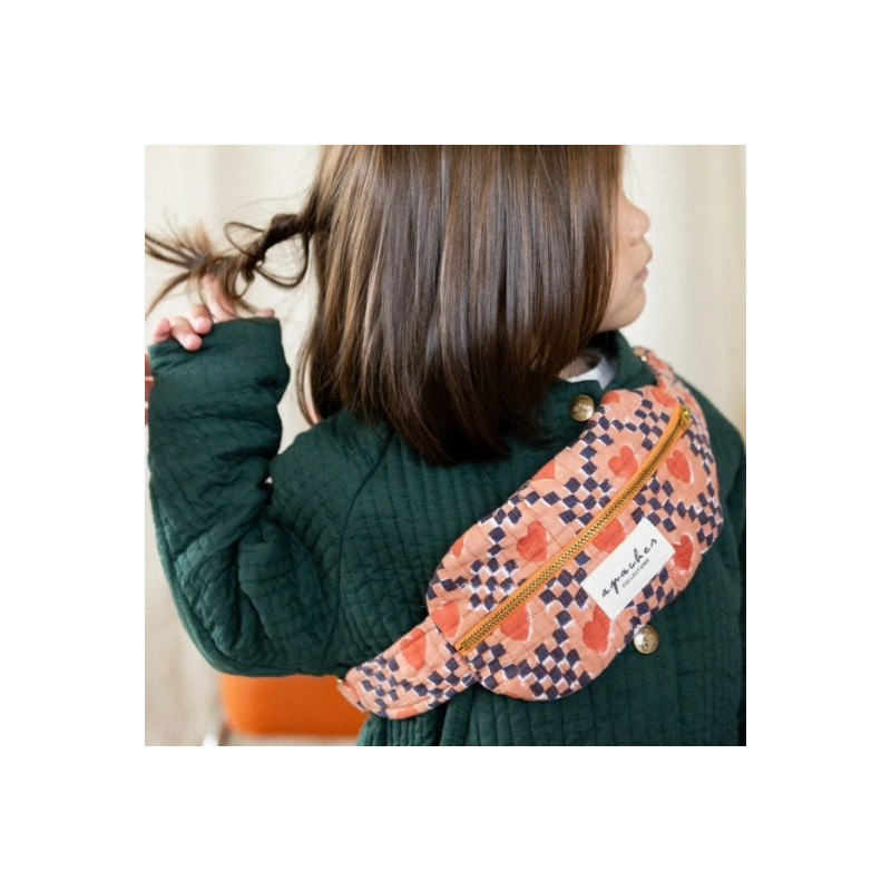 Le mini sac banane Kela de Apaches Collections séduit par son look doux et naturel. Confectionné en coton matelassé, il est léger, confortable et parfaitement adapté aux enfants. Son format pratique permet d’emporter petits jouets, trésors ou goûters avec style au quotidien.