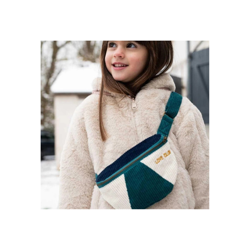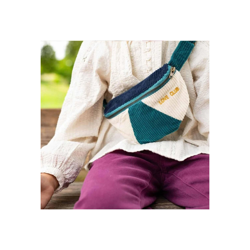Un accessoire doux, pratique et plein de style ! En velours côtelé aux teintes profondes de bleu pétrole, cette banane allie élégance rétro et confort du quotidien. Parfaite pour twister une tenue décontractée ou pour matcher avec la version adulte.