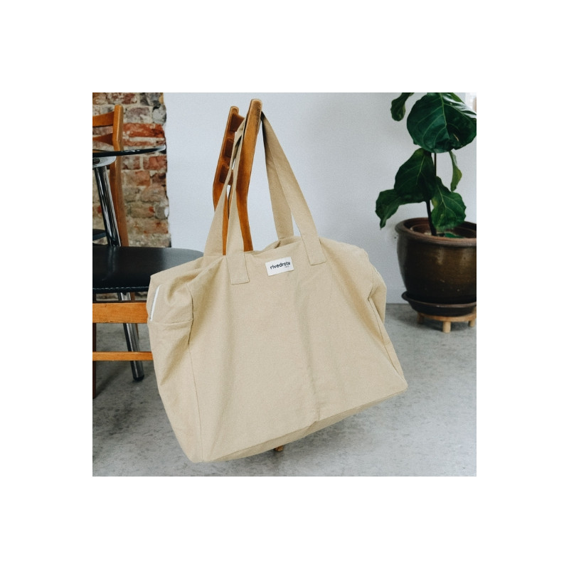 Retrouvez, le sac Célestins 24h dans son nouveau coloris "beige sand" de la marque Rive Droite. Il est conçu en coton upcyclé. Il est doté d'une doublure et d'une poche intérieure pour y glisser vos clefs, téléphone, rouge à lèvres... C'est le sac idéal pour les vadrouilles du quotidien ou pour un court week-end. Vous y glissez facilement deux tenues légères, vos affaires de boulot (ordinateur, carnets, trousse, etc), et tous vos essentiels beauté.