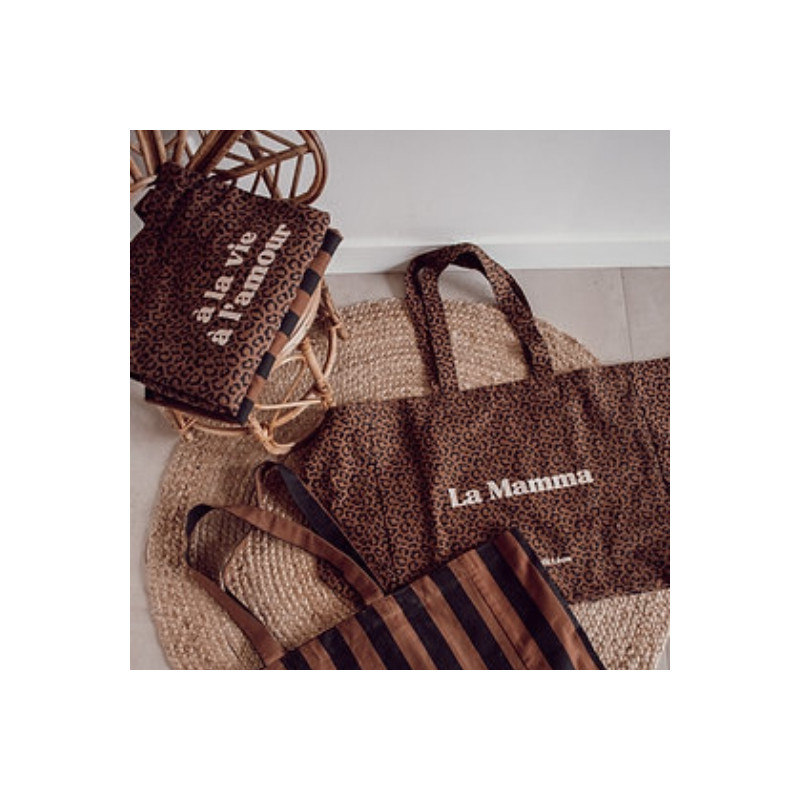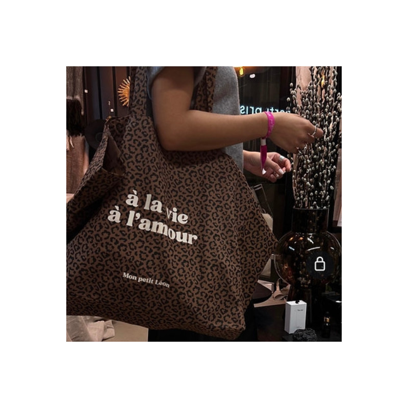 Préparez-vous à un coup de cœur XXL avec ce cabas de chez Mon Petit Léon qui conjugue pratique, robuste et ultra stylé ! Son imprimé léopard audacieux, associé à la sérigraphie beige "À la vie, à l'amour", en fait un véritable statement bag qui célèbre la liberté et l’amour sous toutes ses formes.