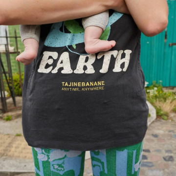 - Un message recto-verso : "MOM" pour assumer son rôle avec panache, "Tajinebanane" pour la touche cool