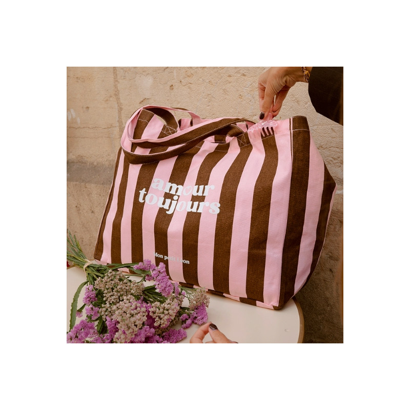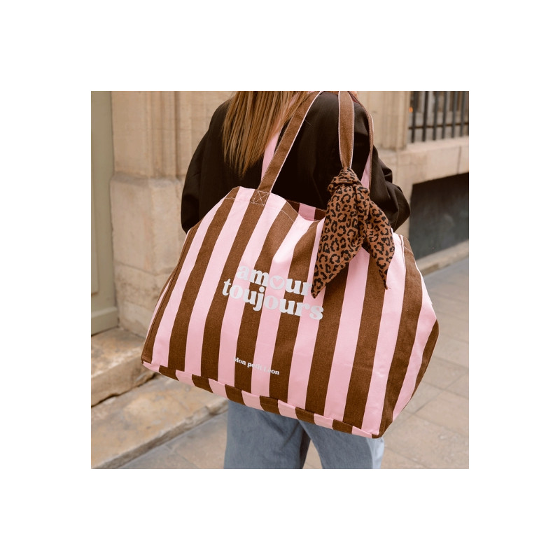 | MODÈLE | Cabas Xxl Rayures Marrons Rose Amour Toujours |