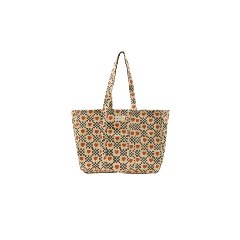 Le cabas Sambi AMOR SAND séduit par son grand format en coton épais et son imprimé cœur plein de douceur, parfait pour toutes les occasions.