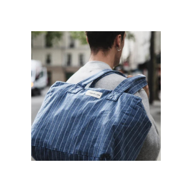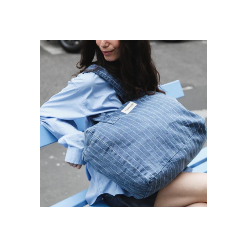 Rive droite : Sac Celestins - denim bleu rayé