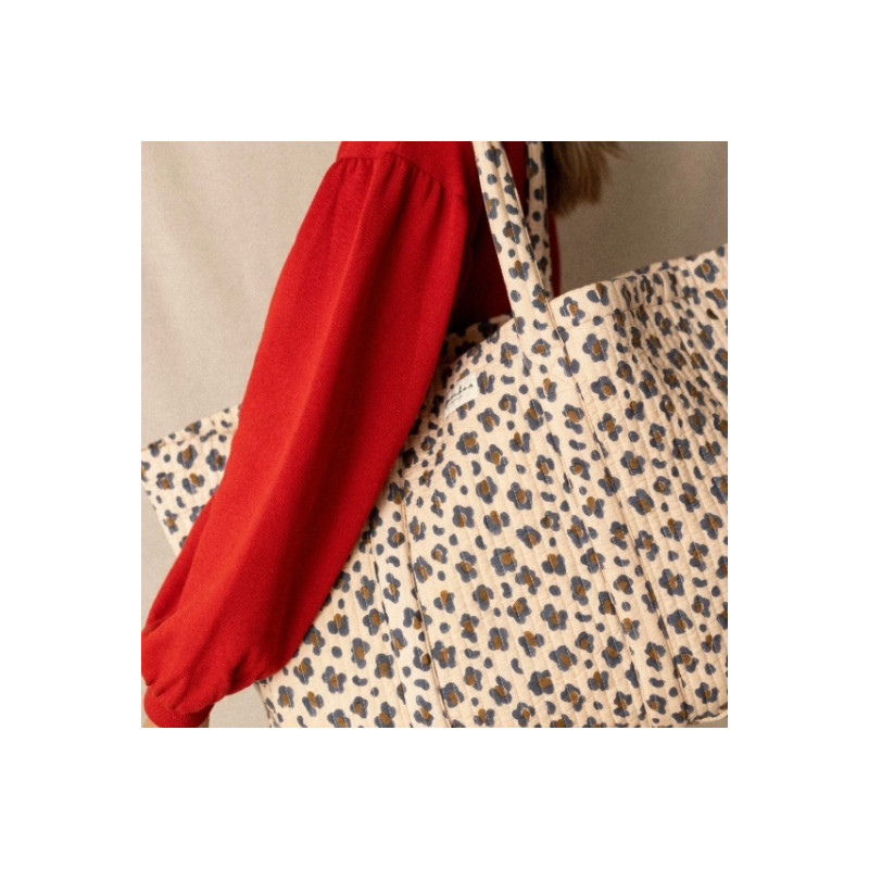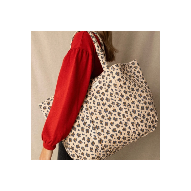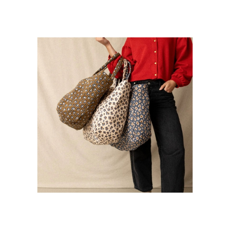 Avec son imprimé léopard graphique, le cabas Samba s’impose comme un accessoire à la fois audacieux et pratique. Son grand format en coton matelassé permet de transporter facilement tous les essentiels du quotidien. Idéal pour la plage, le marché ou les escapades, il allie confort, modernité et caractère sauvage. Un cabas stylé pensé pour accompagner toutes les envies.