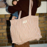 Le sac à main Vichy Moka en 100 % coton est spacieux et élégant. Avec sa pochette intérieure et ses anses confortables, il accompagne parfaitement les journées actives.