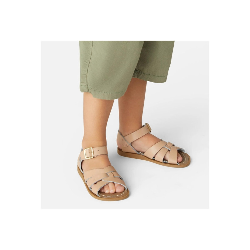 Découvrez les sandales pour enfants Original dans son coloris "latte" de le marque Salt Water, réputées pour leur semelle en caoutchouc robuste et leur ingénieux cuir tressé. Conçues pour être portées dans l'eau, elles allient style et fonctionnalité à la perfection.