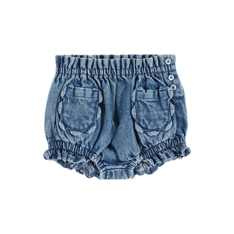 Un vent de liberté souffle sur ce bloomer en denim bleu, une pièce aussi charmante que pratique, pensée pour les petits explorateurs en herbe !