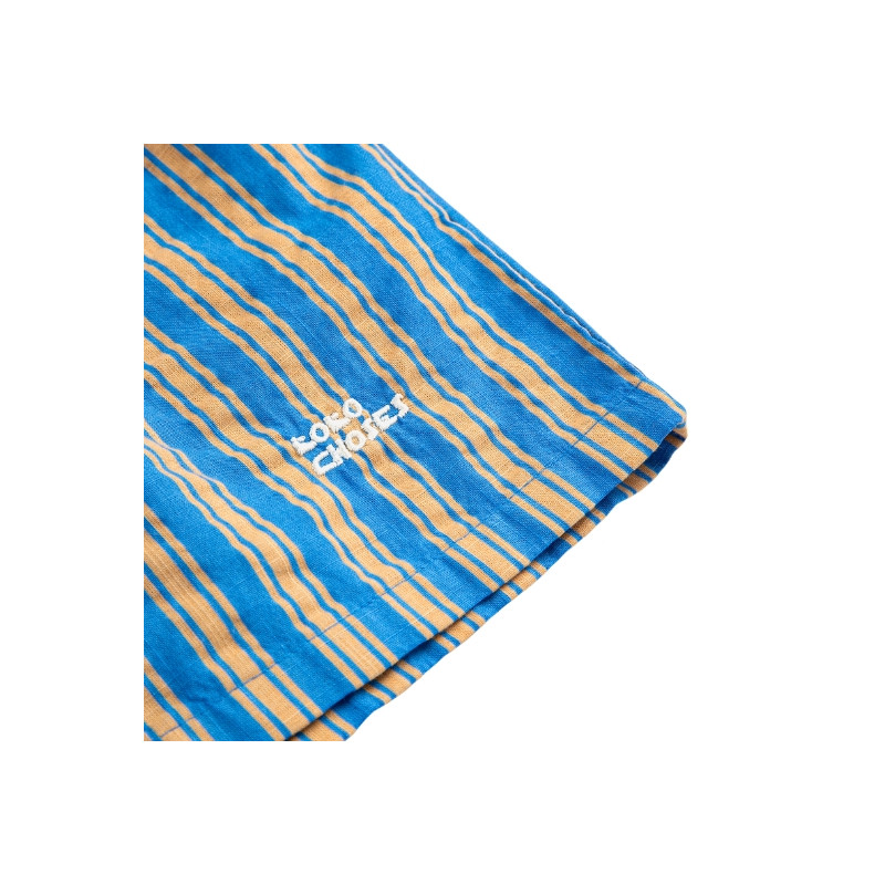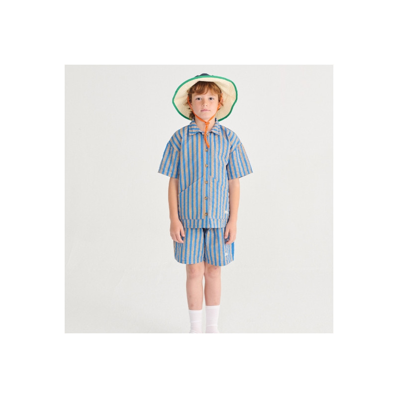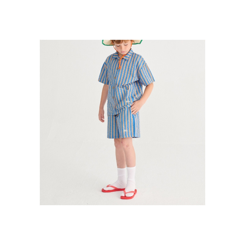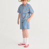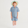 Bermuda enfant en denim rayé bleu marine, confortable et facile à porter.