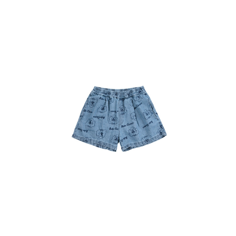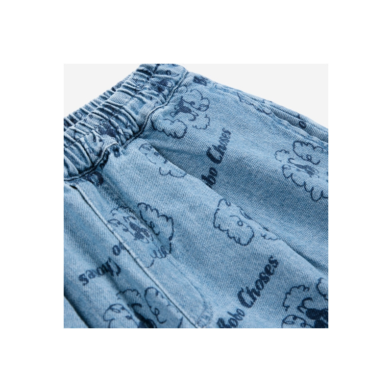 Bobochoses : Short Pickles the dog all over denim enfant - prussian blue