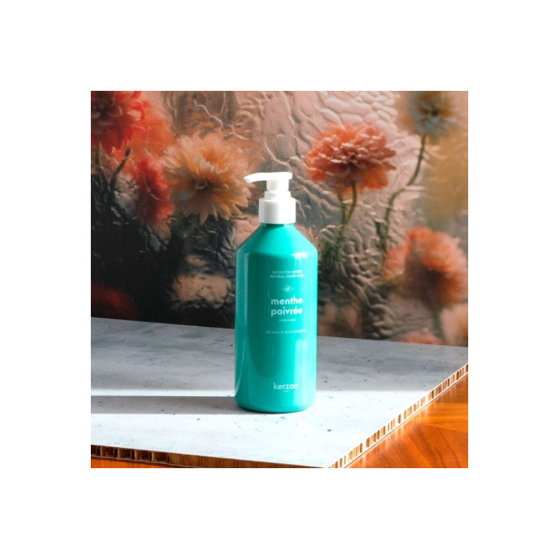 Découvrez la savon fou naturel 500ml "Menthe poivrée" de la marque Kerzon. Naturel et délicatement parfumé, ce savon liquide est formulé à partir d’huiles végétales aux vertus nourrissantes et protectrices. Au quotidien, ce soin désaltérant nettoie en douceur tous les types de peau. Cocktail rafraîchissant, Menthe Poivrée évoque un soir d’été à déguster un mojito à l’ombre d’un palmier. Cette senteur présente une note de tête verte et camphrée, un cœur en assemblage de plusieurs variétés de menthe sur un fond de sauge.